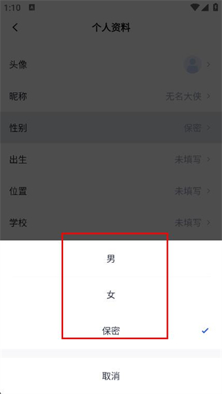 4、在弹窗中选择目标性别,即可完成性别的修改。