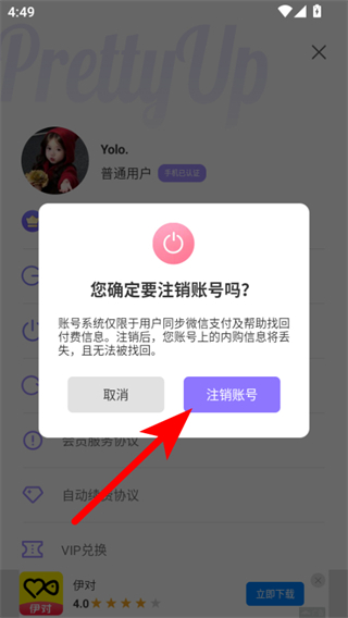 3、在弹出的您确定要注销账号吗?提示框中,点击注销账号按钮完成操作。