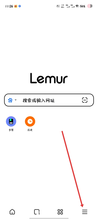 1、打开狐猴浏览器,点击右下角的三条横线图标。