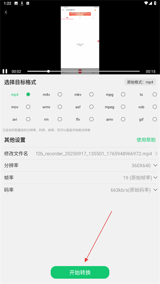 3、选择目标格式后,再点击开始转换按钮,等待软件完成视频格式的转换操作。