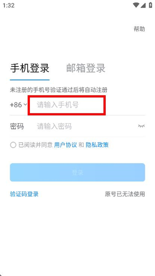 2、点击输入框,填写注册绑定的手机号码。