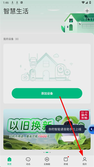 1、在360智慧生活首页界面,点击底部我的选项,进入个人页面。