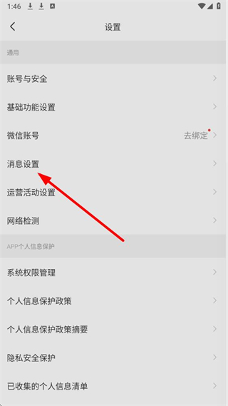 3、在设置界面,点击消息设置选项,进入消息相关设置页面。