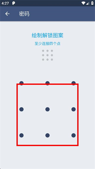 4、根据提示绘制手势图案,完成后即可设置密码锁。