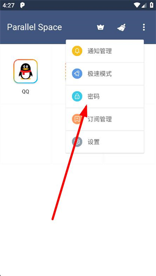 1、打开平行空间应用,点击界面右上角的三点菜单按钮,展开功能列表。