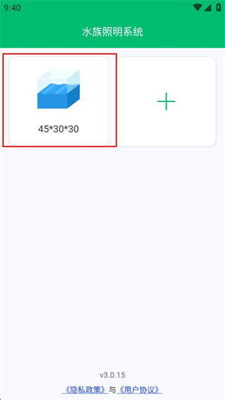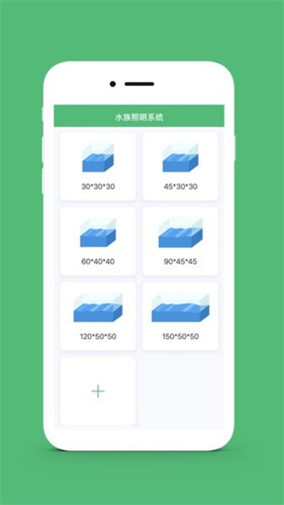 2、在水族照明系统页面,点击带有加号标识的区域,进入缸容量设置相关界面。