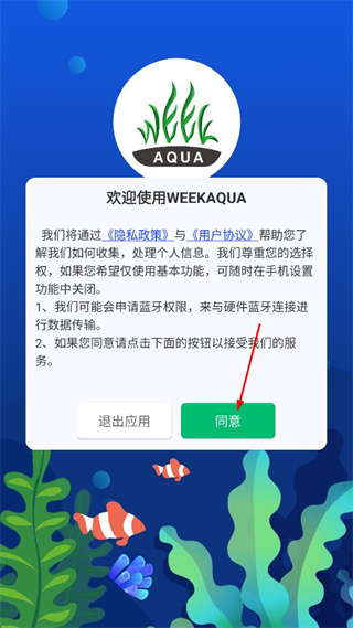 1、查看界面展示的隐私政策与用户协议,点击绿色的同意按钮,进入软件主界面。