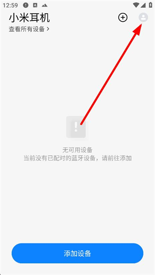 1、打开小米耳机app,找到并点击页面右上角的头像图标。