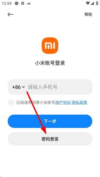 3、在登录页面点击密码登录,输入需要登录的手机号码。