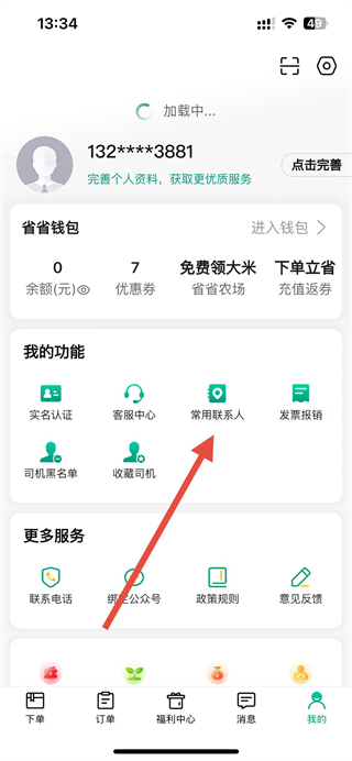 2、进入我的个人页面后,在功能区域找到并点击常用联系人选项,进入常用联系人页面。