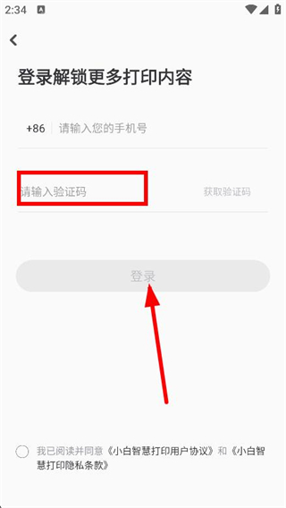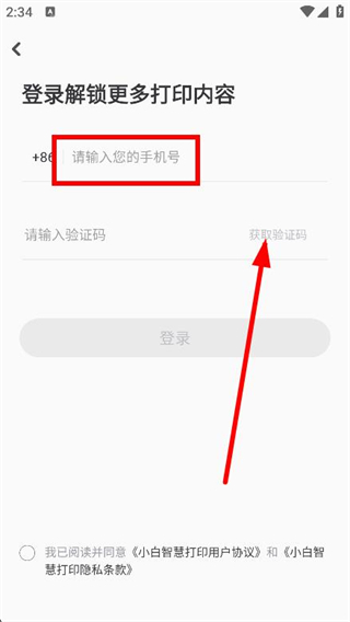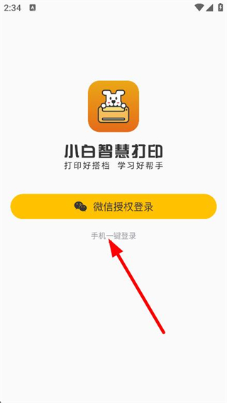 1、打开小白智慧打印,点击下方的手机一键登录选项。