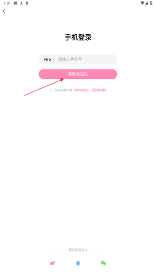3、在手机号输入框填写号码后,点击获取验证码按钮。