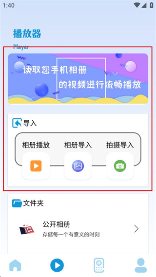 3、连接成功后,点击界面底部的播放器选项,进入播放器对应的功能页面。
