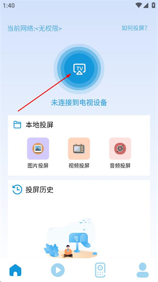 1、打开投屏应用,点击界面中的TV图标,开始搜索可连接的电视设备。