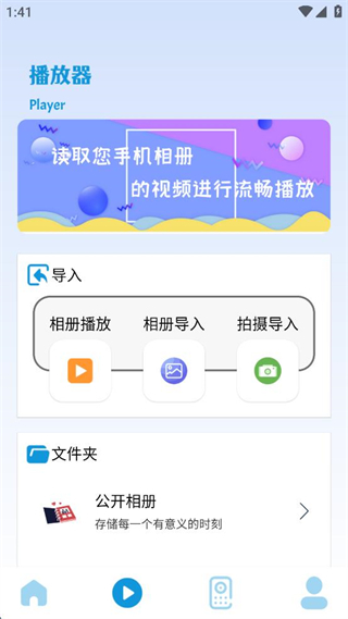 4、在播放器页面,可选择相册播放等方式,导入内容进行投屏播放操作。