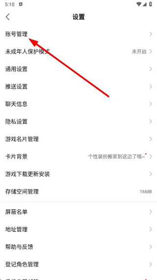 3、在设置界面中,找到账号管理选项并点击,进入账号相关的管理页面。
