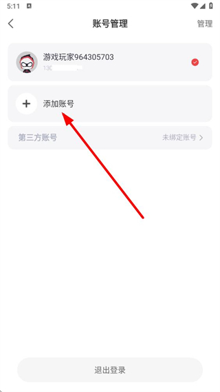 4、在账号管理页面,点击添加账号选项,即可按照提示流程添加新的账号。