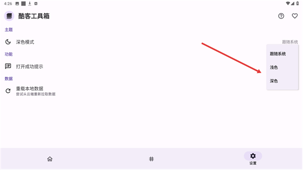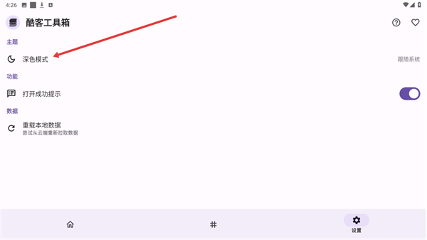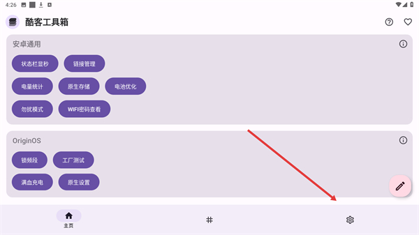 1、启动酷客工具箱App,进入时点击右下方齿轮状的按钮。