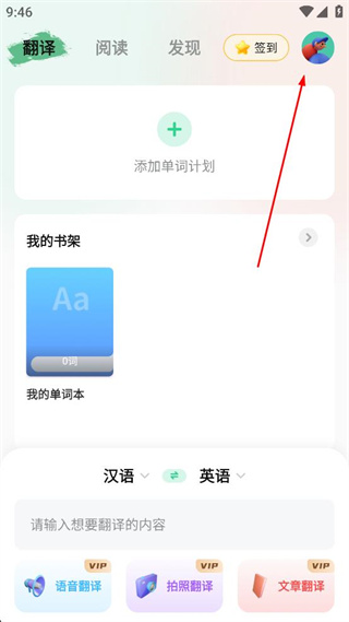 1、打开软件进入主界面,点击界面右上角的头像区域,进入个人相关操作页面。