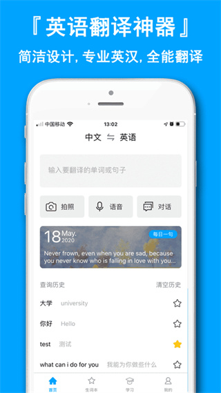 3.促使用户进步,记住更多的英语词汇并时刻为国际友人提供无障碍沟通的翻译服务。