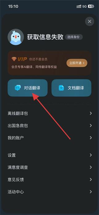 2、在功能菜单中找到对话翻译选项并点击,进入对话翻译界面。