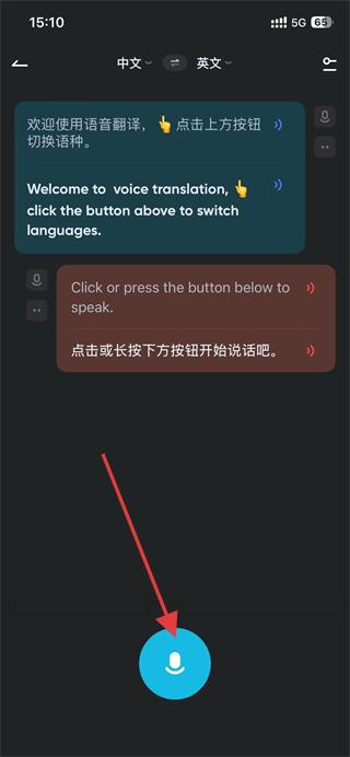 3、点击下方的麦克风,长按开始说话,系统会自动识别语音并翻译。