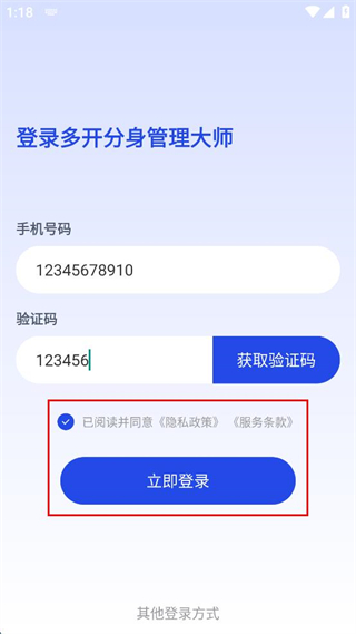 4、勾选已阅读并同意相关条款的选项,点击立即登录按钮完成账号登录操作。