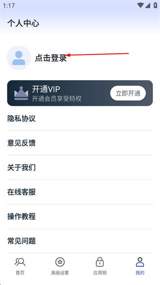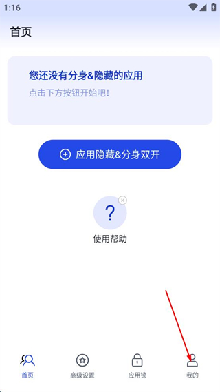 1、打开多开分身管理大师,点击界面底部的我的选项,进入个人中心页面。
