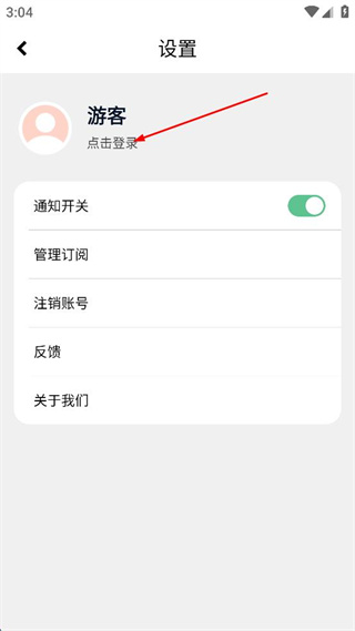 2、在展开的选项中进入设置页面,找到游客区域的点击登录选项并点击。