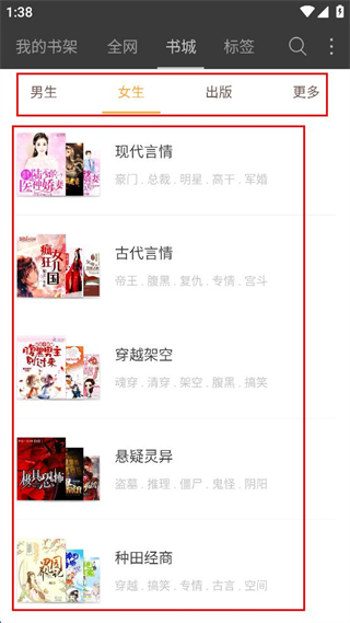 2、让用户搜寻到最合适、最感兴趣的小说内容,小说阅读器将小说资源进行了合理分类