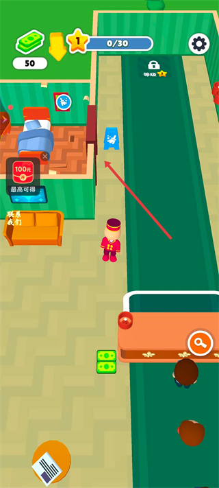 4、留意前台旁边的钱币,移动过去即可收集。