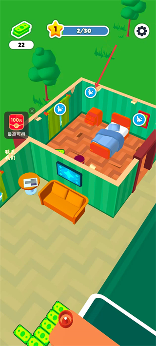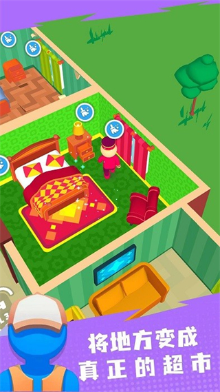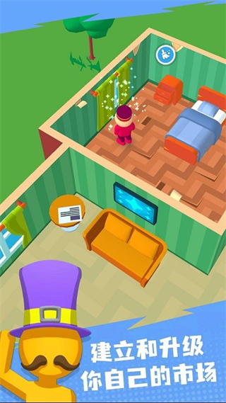2、进入房间后点击清洁图标,完成清洁任务。