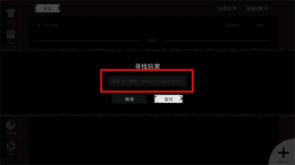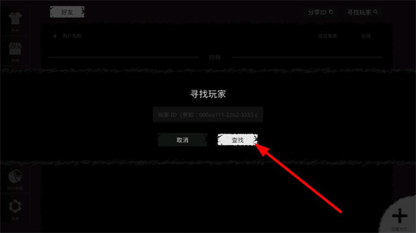 3、在寻找玩家弹窗的输入框中,填写目标玩家的ID,完成信息录入。