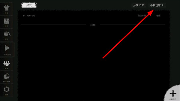 2、在好友界面,点击右上角的寻找玩家按钮,触发玩家搜索的配置弹窗。