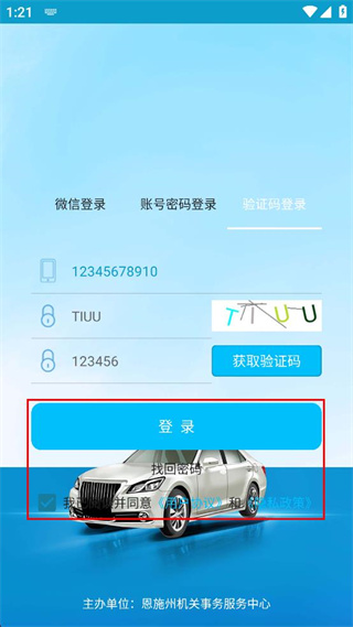 2、勾选我已阅读并同意用户协议和隐私政策的选框,确认相关信息填写准确无误,准备进行登录操作。