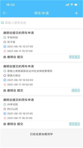 2、支持用车申请的提醒,会及时提醒用户用车申请的审核结果。