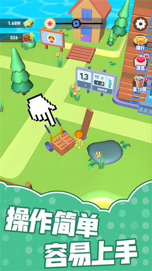 以卡通可爱的画风为特色,整体设计非常温馨治愈,游戏采用简单易操作的方式,只需通过点击屏幕,就可以将火柴人从一个地方移动到另一个地方,完成砖头的搬运等任务。