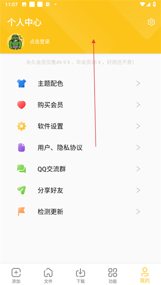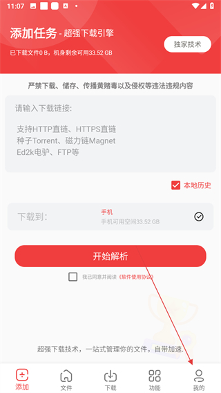 1、打开该下载工具的添加任务页面,点击导航栏的我的选项,进入个人中心界面。