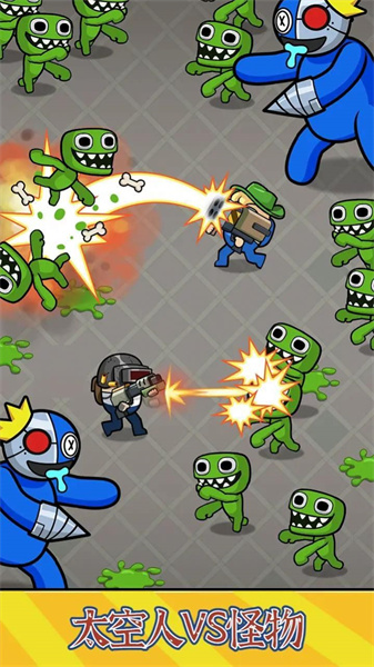 太空人VS怪物是一款休闲的游戏,游戏里面有大量的怪物在四处袭击人,玩家需要在使用不同的角色来击败大量的怪物,游戏对玩家的反应能力的要求还是很高的,需要尽量的避开敌人的攻击,使用武器将其击败,快来体验下。