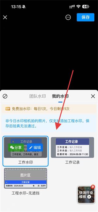 4、在水印选择菜单中,挑选想要添加的水印样式如工作水印,即可为图片添加上对应水印。