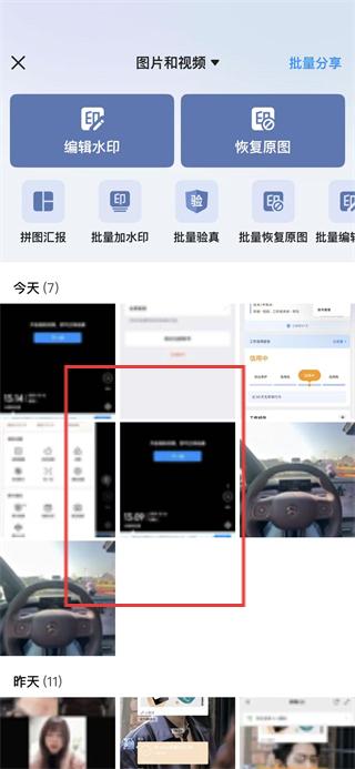 2、在图片选择页面中,选中要加水印的目标图片,进入图片编辑界面。