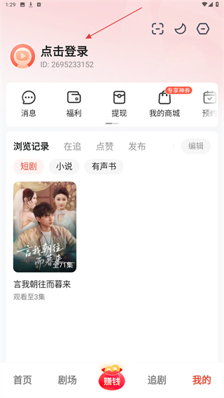 2、进入个人中心的页面内,点击上方登录的按钮。