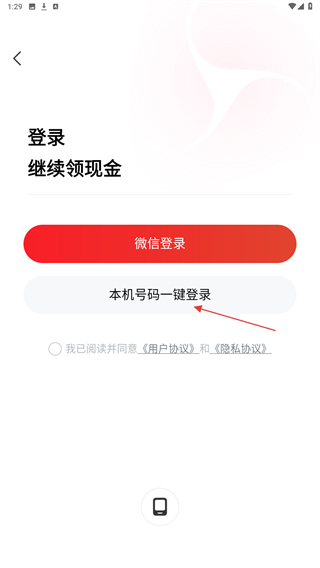 3、在登录的页面内,点击下方本机号码一键登录即可。