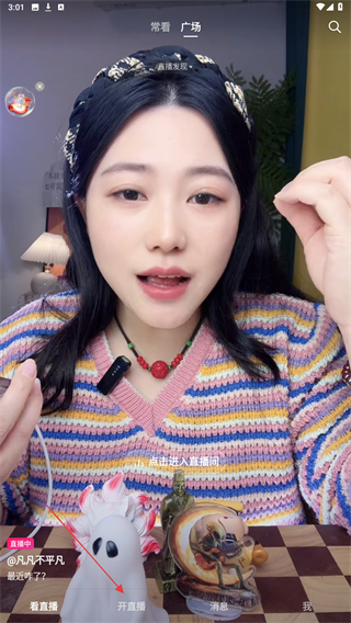 1、进入抖音直播伴侣的直播界面后,点击页面底部的开直播按钮。