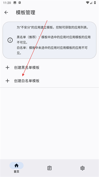 2、在模板管理页面选择创建白名单模板选项,点击进入模板设置页面。
