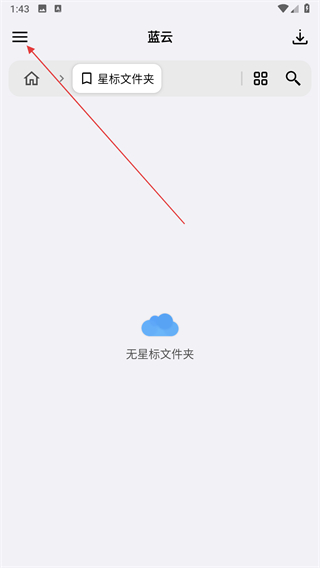 1、打开蓝云app主界面,点击左上角的菜单图标,展开功能选项。