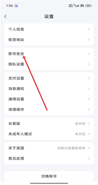 1、在“设置”页面点击“账号安全”选项,进入账号安全管理界面。