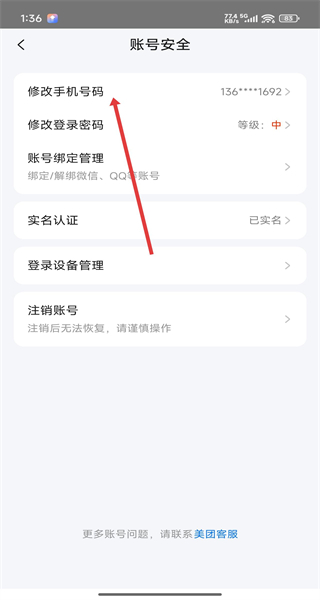 2、账号安全界面点击“修改手机号码”,进入新手机号绑定页面。