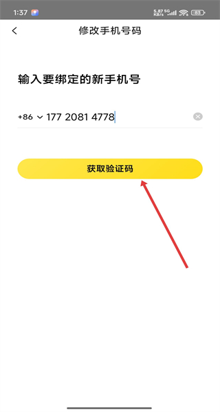 4、在验证码输入页填写收到的短信验证码,完成手机号码修改操作。
