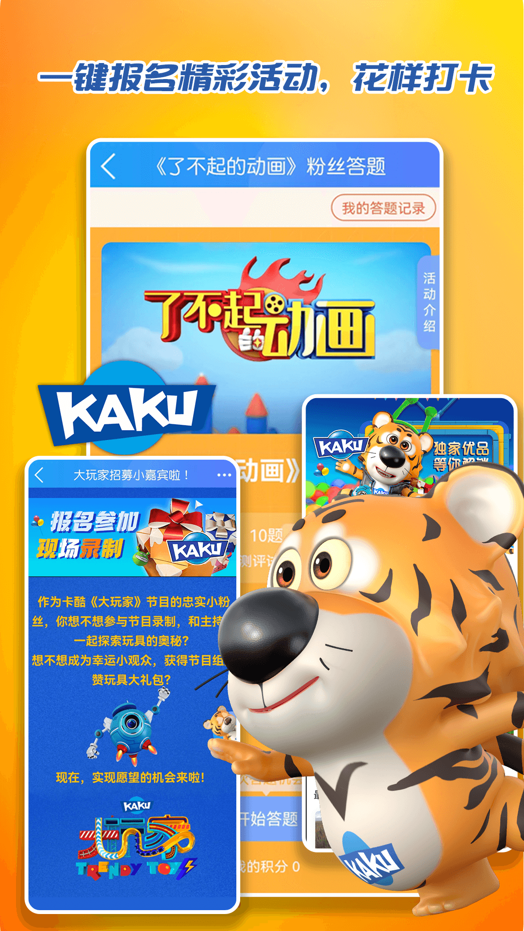 1、一键报名:丰富的节目招募活动,一键报名,登上卡酷卫视;